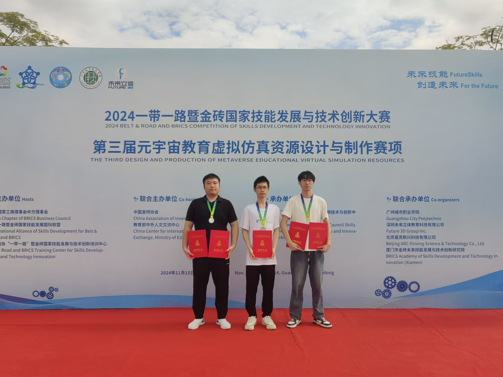 近日,我校学子在技能赛场再获佳绩。学校信息与设计学院学生团队张婷婷、杨正群、李海第(指导老师:梁芳、杨磊)荣获2024年(第十九届)海峡两岸暨港澳地区大学生计算机创新作品总决赛高职组一等奖。信息与设计学院学生团队王嘉杰、李奕典、刘湘豪(指导老师:杨磊、胡炜)荣获2024年一带一路暨金砖国家技术创新大赛元宇宙教育虚拟仿真资源设计与制作赛项银奖。