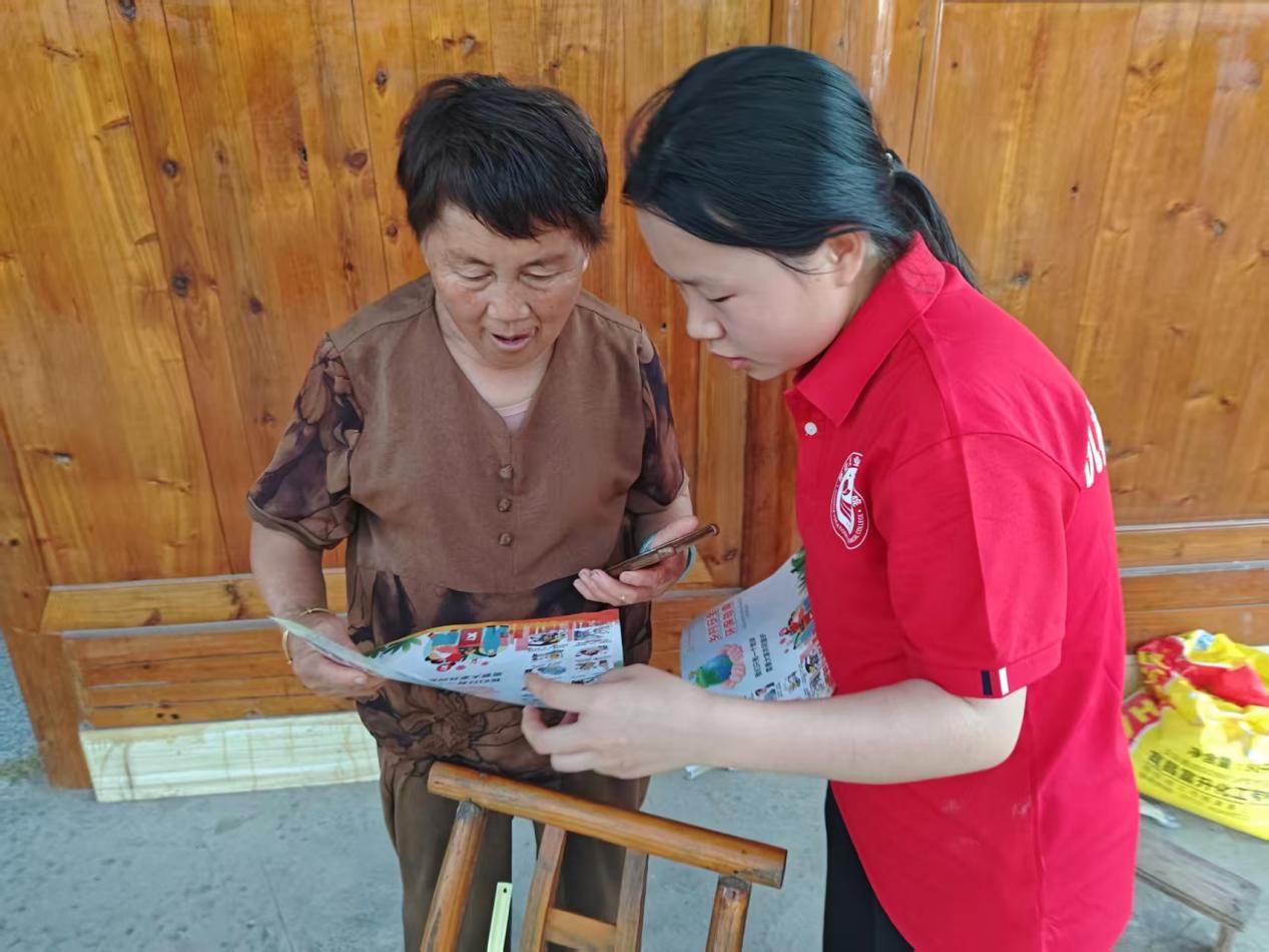 在小江古村落,服务团志愿者走村串户,搭台设点,向村民们发放安全环保指南,宣讲垃圾分类、防火防盗防诈、防溺水等知识。